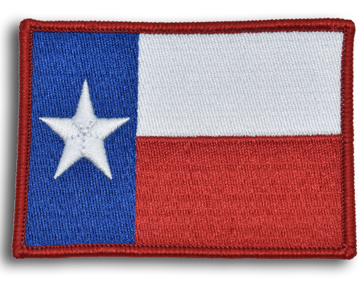 This official Texas Flag Emblem is made of 100% Polyester fabric and thread with Industrial Heat Seal backing. The emblem measures 3 1/4"W x 2 1/4"H and has a merrow border. The fabric color is White and the border color is Red. This emblem is designed for industry laundry for up to 52 washes without fraying or discoloration.